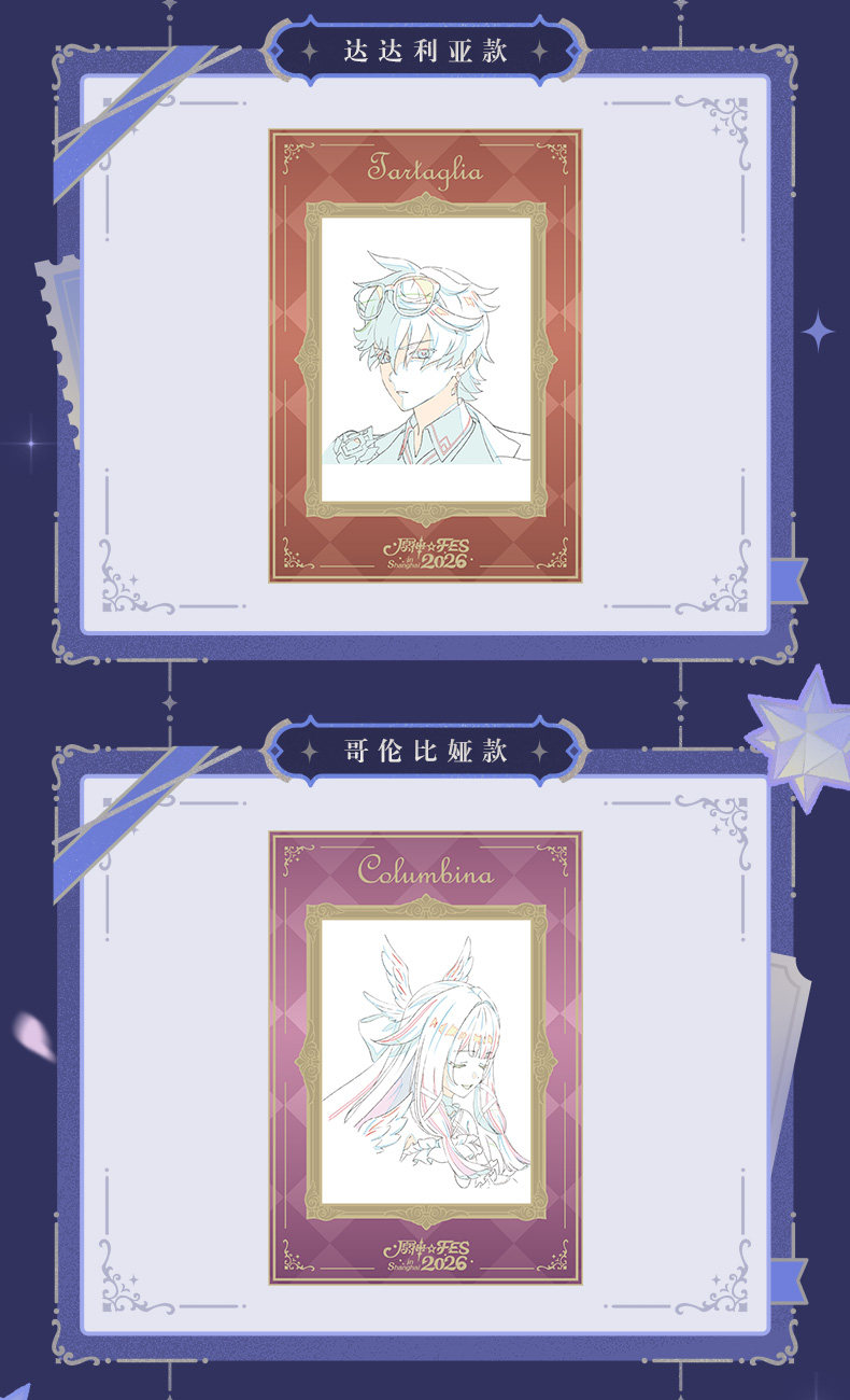 ~ Карточки с персонажами линейки мерча, посвященного фестивалю FES2026 в Шанхае ~